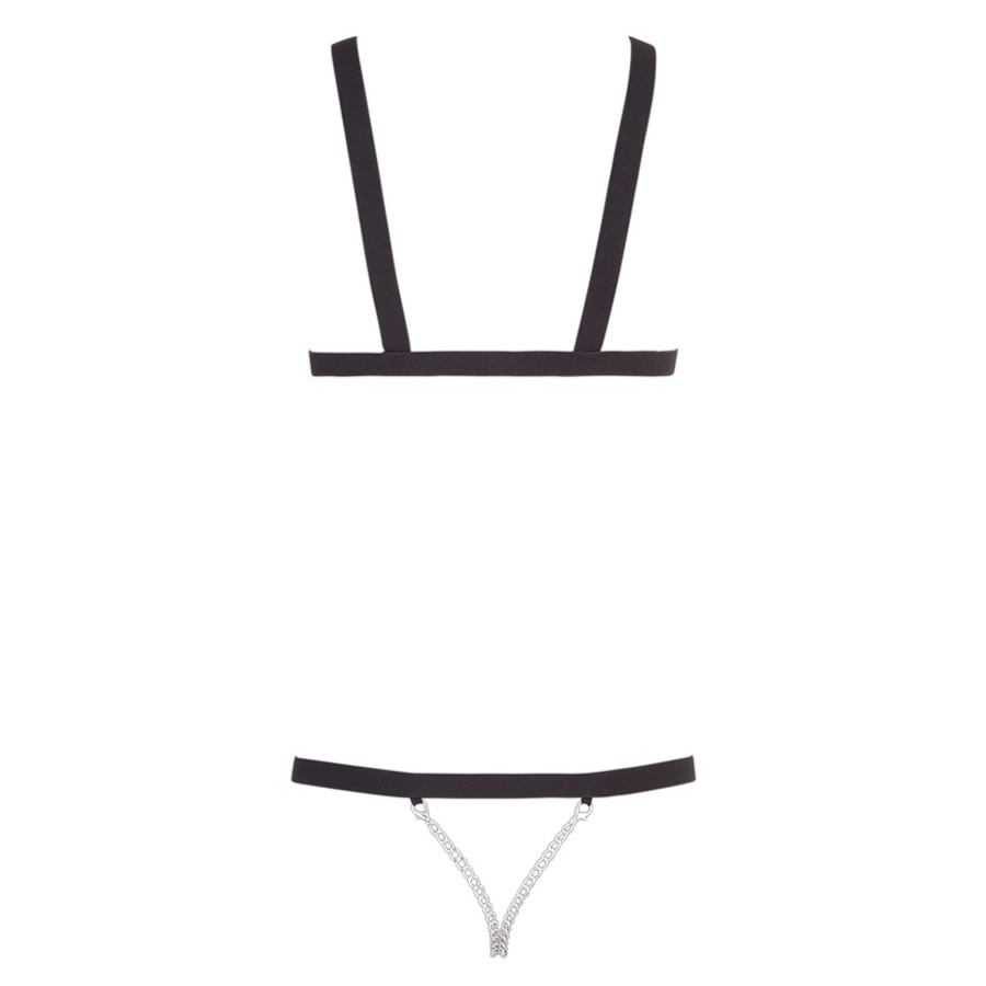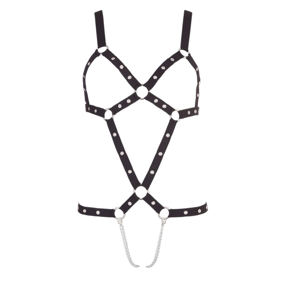 Harness je izdelan iz močnih elastičnih jermenov obdanih s tekstilom. Sprednji del je povezan s kovinskimi obročki, jermeni imajo nanizane kovinske obročke za dekoracijo. Hlačke tega harnessa so oblikovane iz kovinske verižice. Velikost: S – L