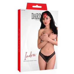 Indra tangice brez mednožja, z biseri. Prosojne tangice iz tila, z razporkom in umetnimi biseri v razkoraku. Na sprednji strani jih krasi še vezenina metulja.