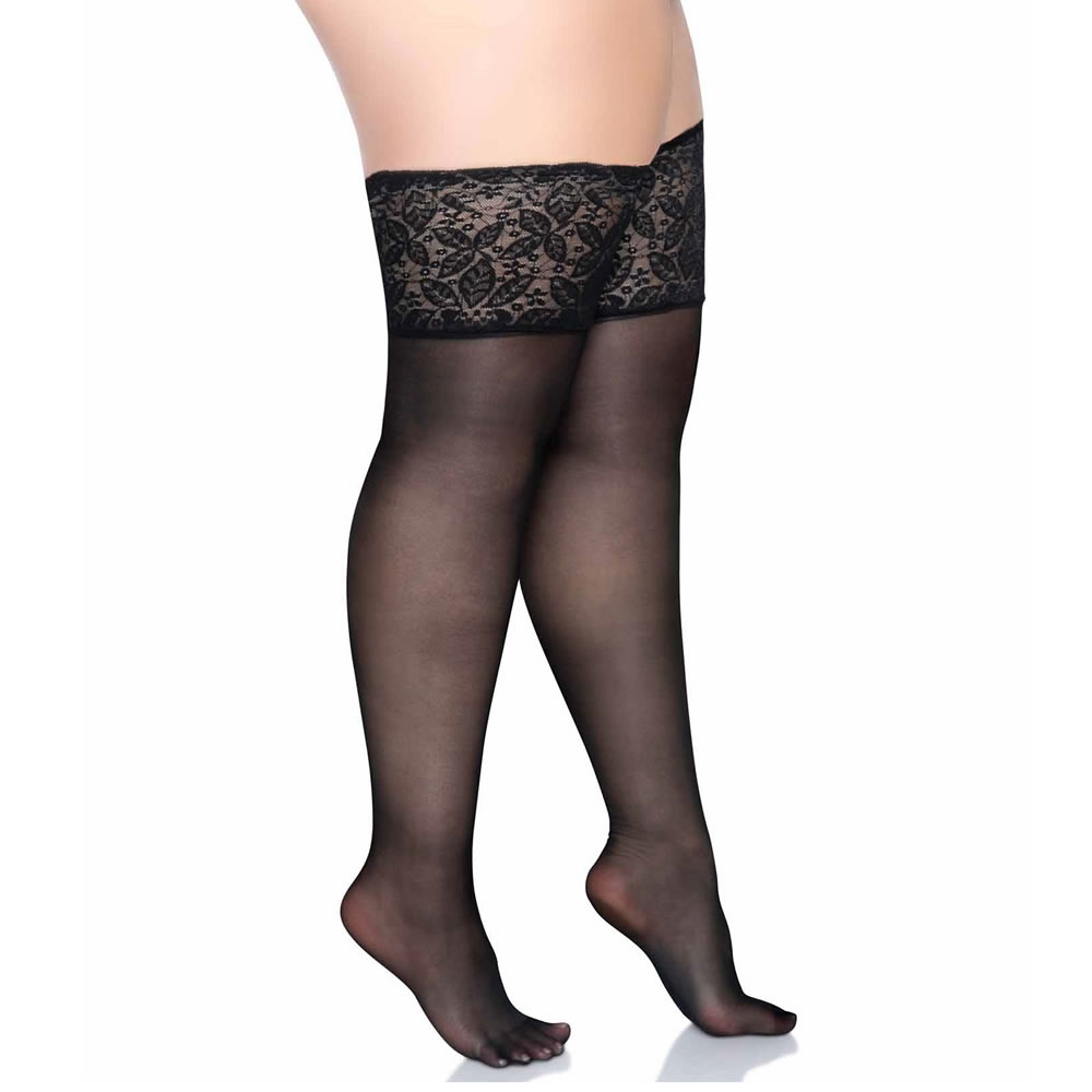 Samostoječe nogavice s široko čipko črne Leg Avenue (9750)
