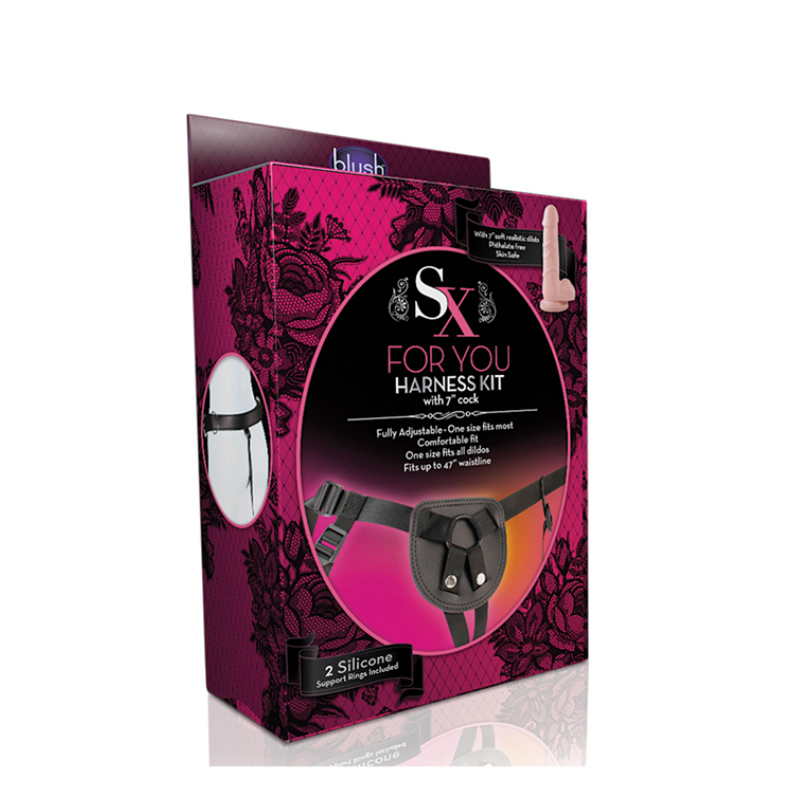 SX For you s 7 inčnim dildom v obliki penisa je napreden strap-on sistem. S priloženima dvema obročkoma za vpenjanje dilda vam ne bo več potrebno razmišljati o tem, kako velik je vaš priljubljen dildo in ali bo ustrezal odprtini za vpenjanje. Uporna blazinica na sprednji strani je iz žametno gladkega umetnega usnja, nastavljivi paščki pa so iz trpežnega najlona. Priložen dildo je iz PVC-ja, brez ftalatov. Strap-on pas je primeren za vse z obsegom v pasu do 119 cm.
